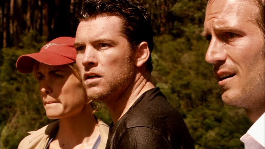 Released in 2007, Rogue follows travel writer Pete McKell (Michael Vartan), who joins a river tour in the remote Australian outback led by Captain Kate Ryan (Radha Mitchell). She ferries a mixed group of tourists, including a very young Mia Wasikowska, along crocodile-inhabited waters in a small, low boat. Their time is disrupted first by two local troublemakers (one played by Sam Worthington) and then by distress flares spotted in the distance. Against the group’s objections, Kate pulls rank and leads the group further down the river to investigate. Their boat is attacked by a colossal crocodile, leaving them stranded on a shrinking mud island as the tide begins to rise.