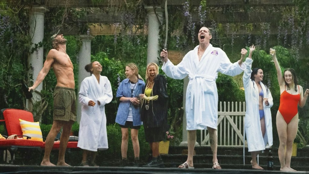 The film follows a group of young adults plus one older boyfriend (Lee Pace), who gather for a hurricane party at David’s (Pete Davidson) parents’ lavish mansion. As the storm rages outside, they plan to pass the time drinking, taking drugs and playing a party game called Bodies Bodies Bodies. When one member of the group suddenly dies, the evening spirals into chaos as suspicion and paranoia begin to take hold.