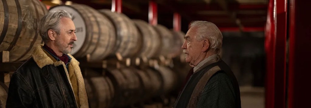 Alan Cumming leads the film with a performance that is understated and grounded. Donal is flawed, shaped by past decisions and unresolved family tensions. As the film progresses, he shifts from a reluctance to confront his past to a sense that he is searching not only for reconciliation with his brother, but also for a connection to the place he left behind. Brian Cox, in contrast, brings a quiet strength to Sandy, portraying a man who has remained rooted, both physically and emotionally. There is a kindness to him but also a clear loneliness, suggesting a life shaped by duty and sacrifice. As he considers stepping back from the distillery, there is a gentle nod to his role in the television series Succession although approached here with far greater softness.